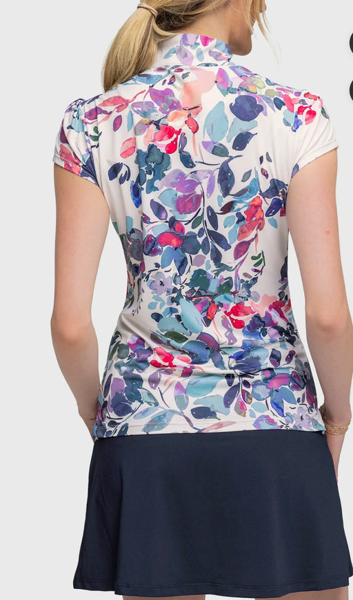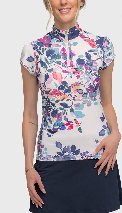 KASTEL CAP SLEEVE AMETHYST WATER COLOR FLORAL 1/4 ZIP