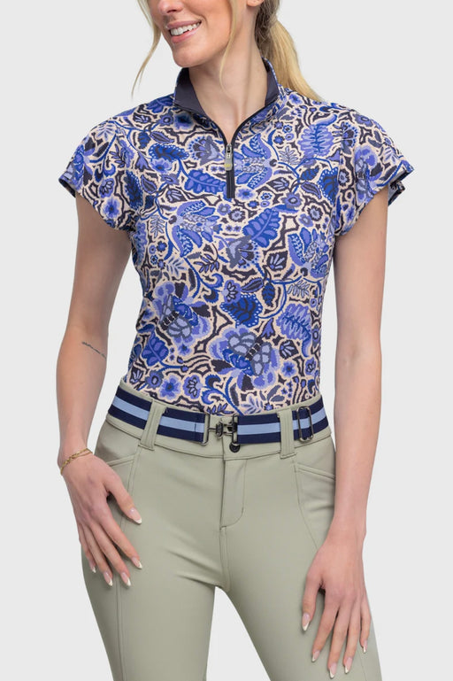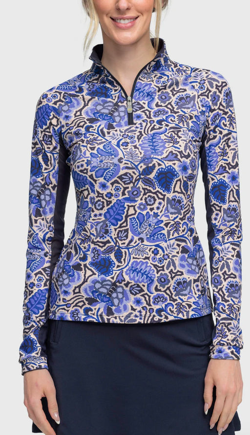 KASTEL FLUTTER SLEEVE NAVY FOLIAGE 1/4 ZIP