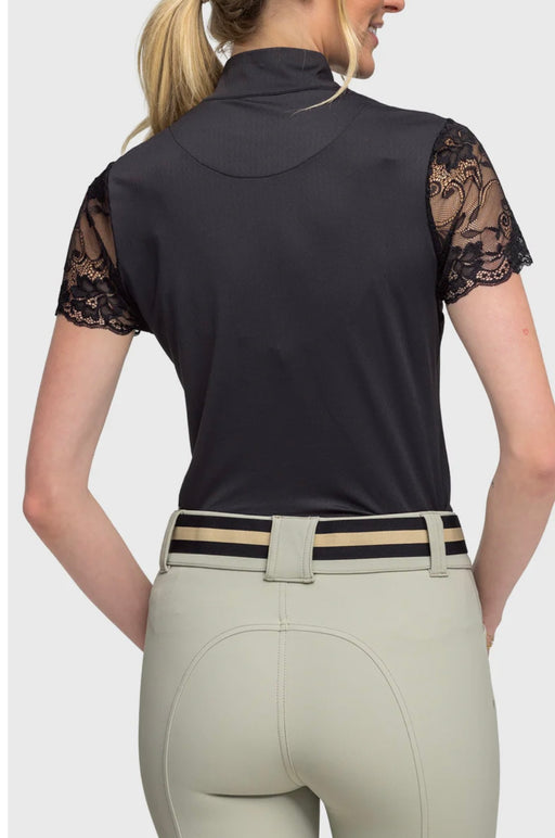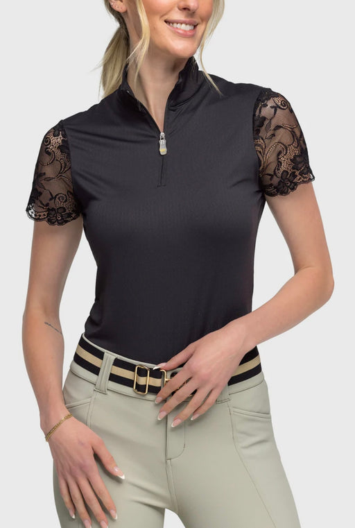 KASTEL GALLOON LACE BLACK CAP SLEEVE 1/4 ZIP