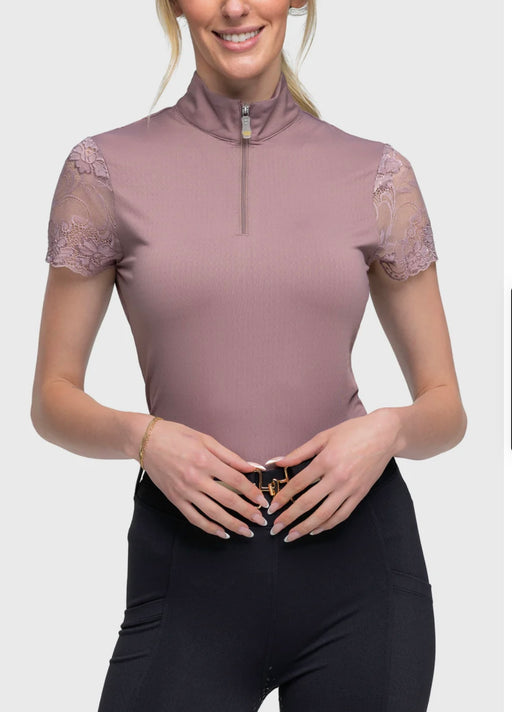 KASTEL GALLOON LACE DUSTY MAUVE CAP SLEEVE 1/4 ZIP