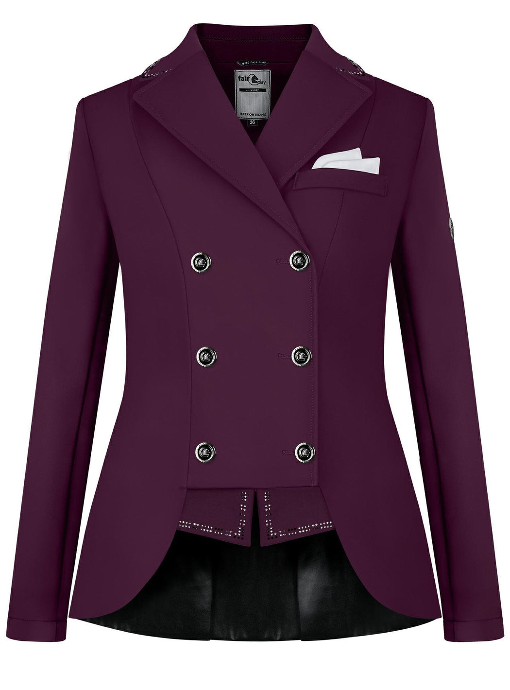 Fair Play show jackets can be machine washed in a cold, gentle cycle. Do not dry clean. Tumble dry on low and use a cool iron if needed.