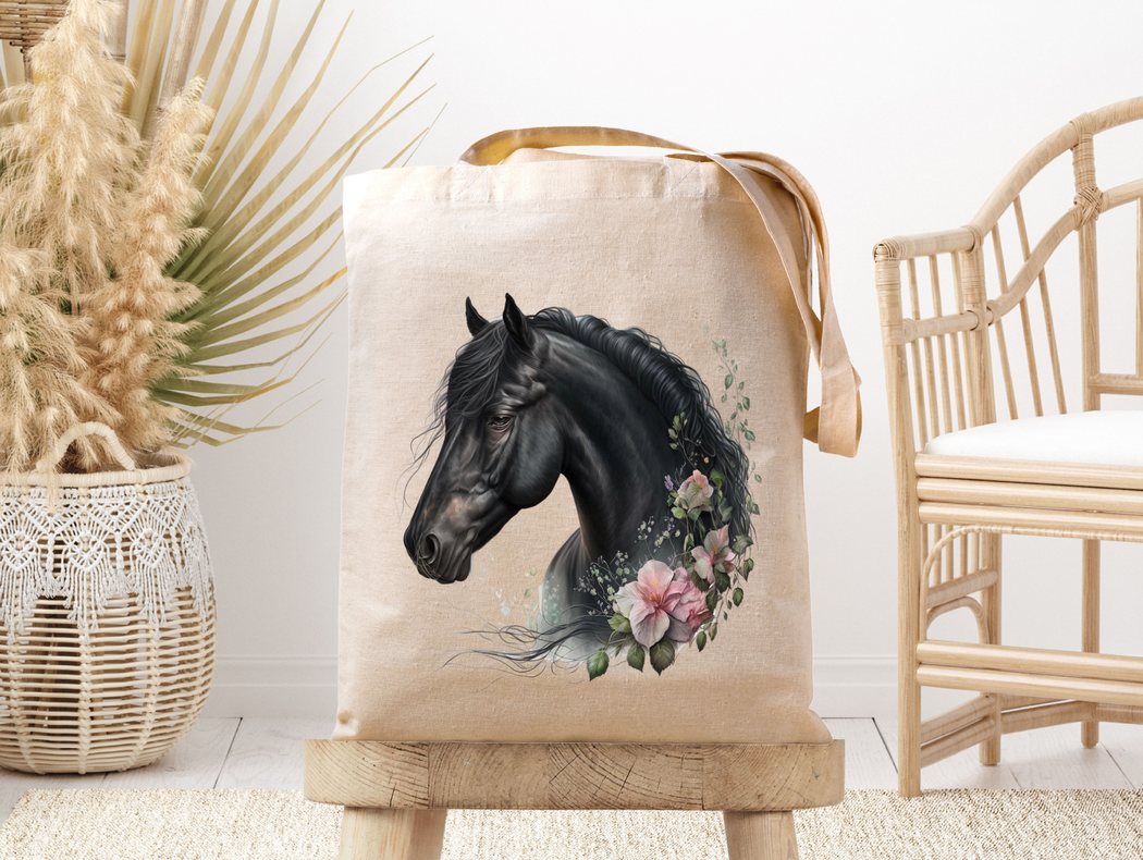 Bay Floral Horse / Equine / Head- Canvas Tote Bag