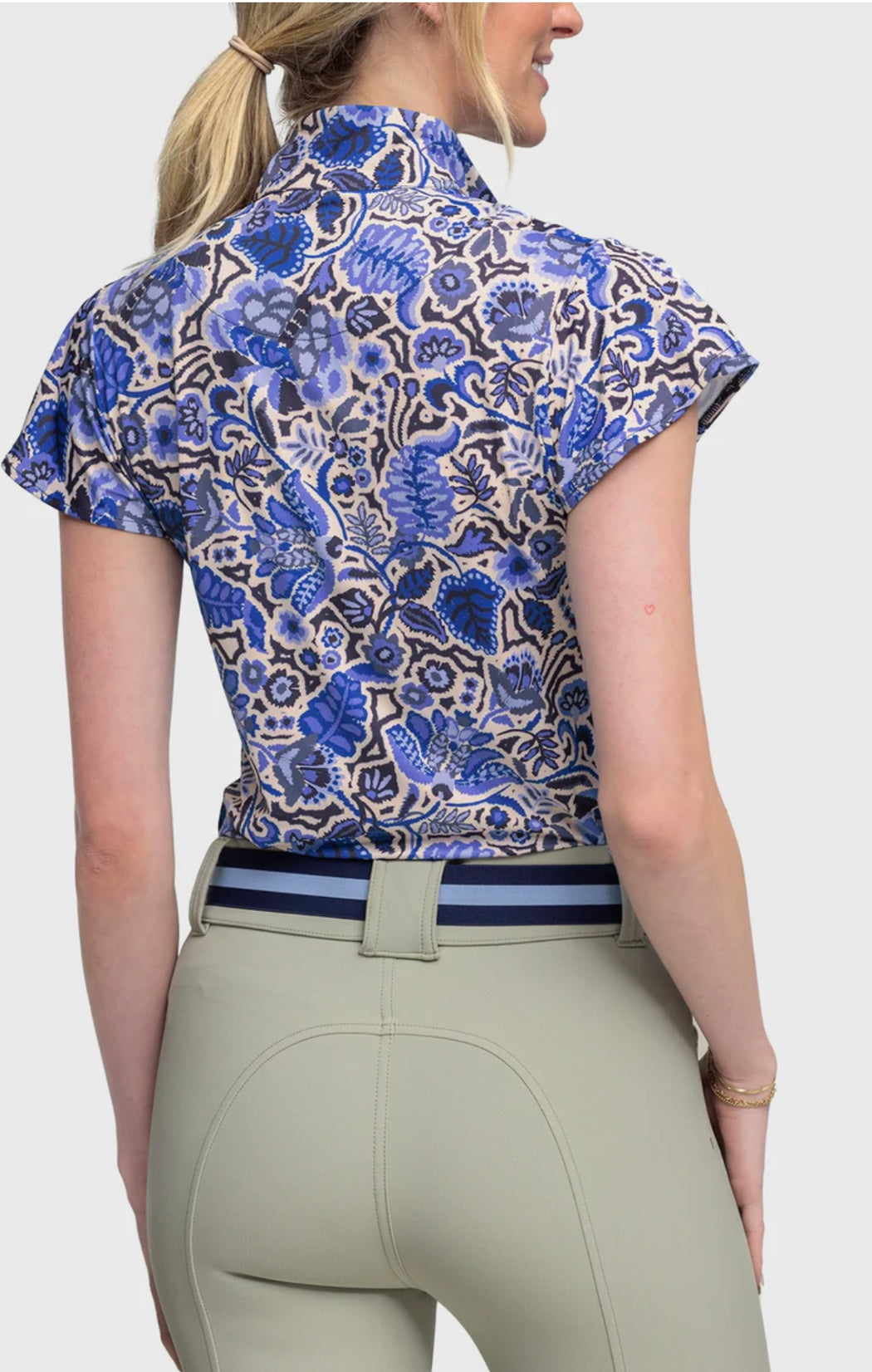 Gorgeous blues dominate in Kastel’s dreamy floral print featured in our signature flutter sleeve silhouette.