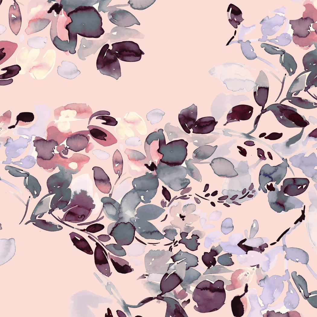 KASTEL LONG SLEEVE PEARL BLUSH WATERCOLOR FLORAL RAGLAN WITH ROSE GOLD 1/4 ZIP