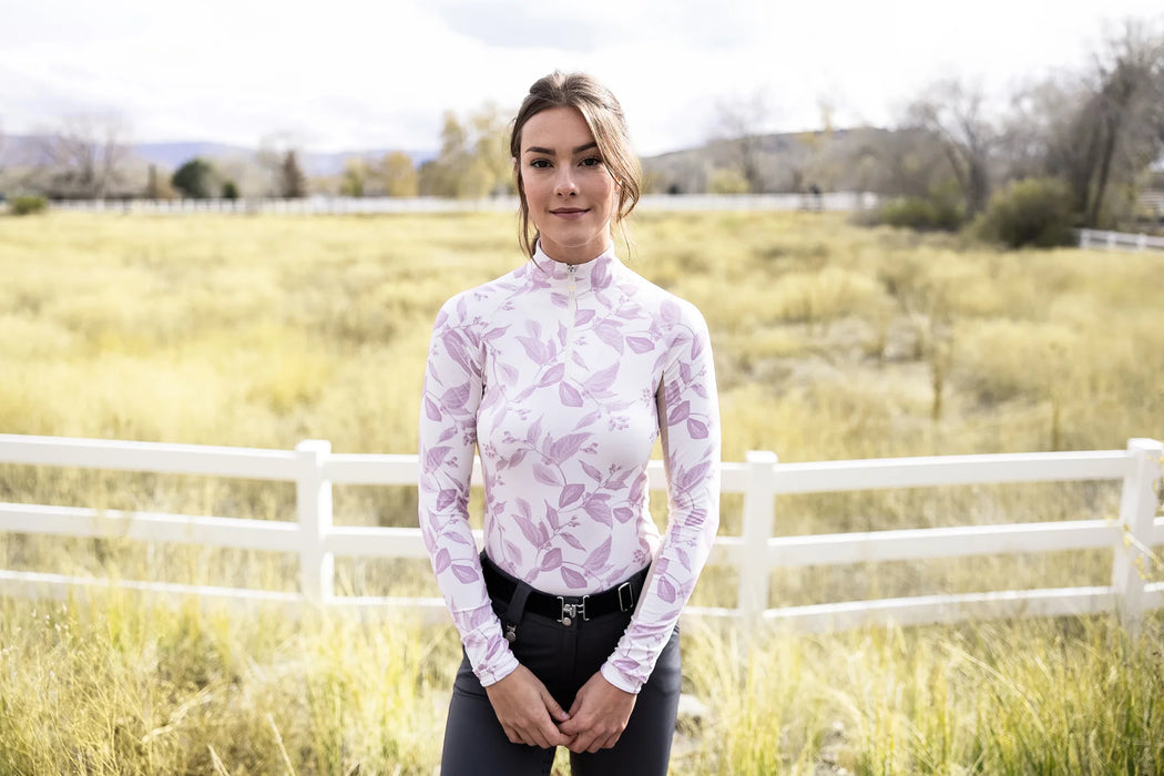 Kastel'scontemporary long sleeve ¼ zip makes a statement in our sophisticated orchid and cream lithograph leaf print. UPF 30, mesh sleeves, and soft 4-way stretch fabric in a contemporary fit.